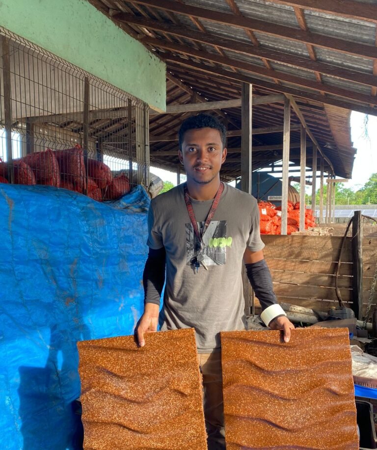 Com olhar sensível para os desafios da sua terra natal e determinação para mudar realidades, Washington transformou o caroço do açaí, antes descartado como lixo, em matéria-prima para criar biopainéis ecológicos, cubas, brindes e peças artesanais que unem inovação, identidade regional e impacto positivo.